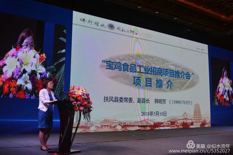 5月10日下午,宝鸡食品工业招商引资项目推介会在西安曲江国际饭店举行。推介会以食品加工业为主题,以专题推介和招商引资为核心,吸引了来自全国各地的40多家客商参加会议。扶风县精彩推荐了农产品精深加工项目并成功签约亿元项目,迎来第三届丝绸之路国际博览会暨中国东西部合作与投资贸易洽谈会招商引资工作的开门红。