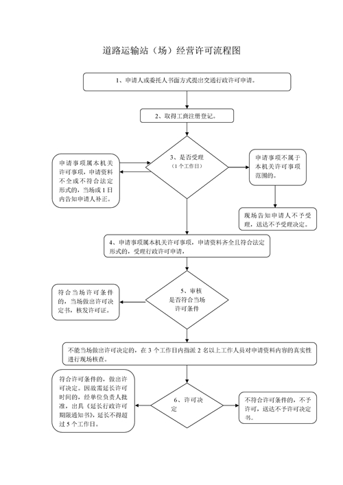 《中华人民共和国道路运输条例》(国务院令第406号发布,第628号、第666号修订)第四十条 申请从事道路运输站(场)经营、机动车维修经营和机动车驾驶员培训业务的,应当向所在地县级道路运输管理机构提出申请,并分别附送符合本条例第三十七条、第三十八条、第三十九条规定条件的相关材料。县级道路运输管理机构应当自受理申请之日起15日内审查完毕,作出许可或者不予许可的决定,并书面通知申请人。 |