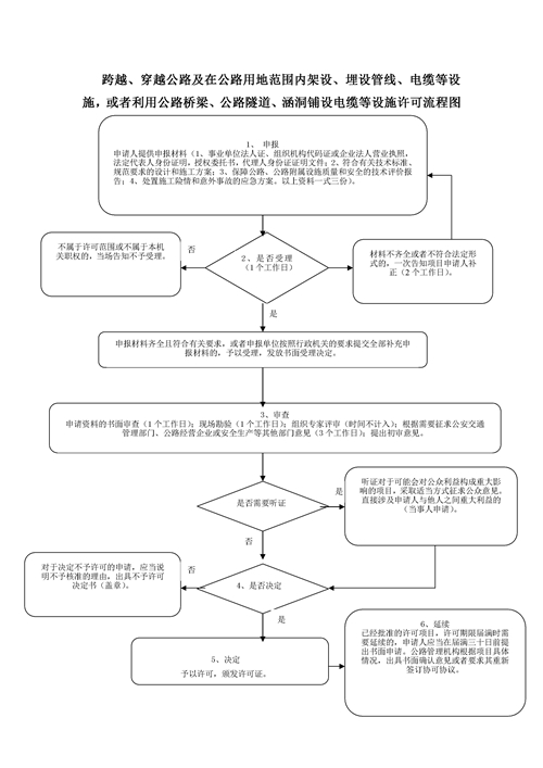 跨越、穿越公路及在公路用地范围内架设、埋设管线、电缆等设施,或者利用公路桥梁、公路隧道、涵洞铺设电缆等设施许可 |
