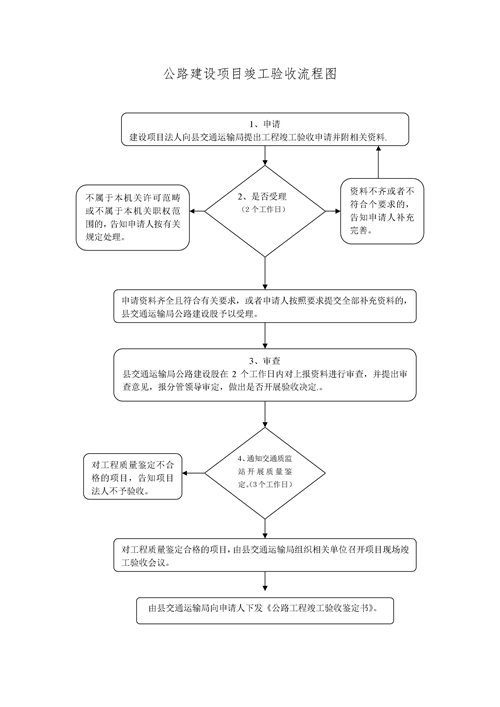 1、《中华人民共和国公路法》第三十三条 公路建设项目和公路修复项目竣工后,应当按照国家有关规定进行验收;未经验收或者验收不合格的,不得交付使用
