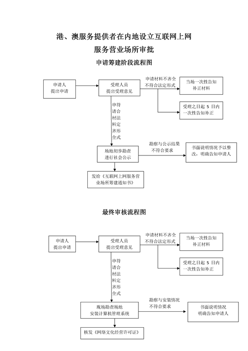 港、澳服务提供者在内地设立互联网上网服务营业场所审批 |