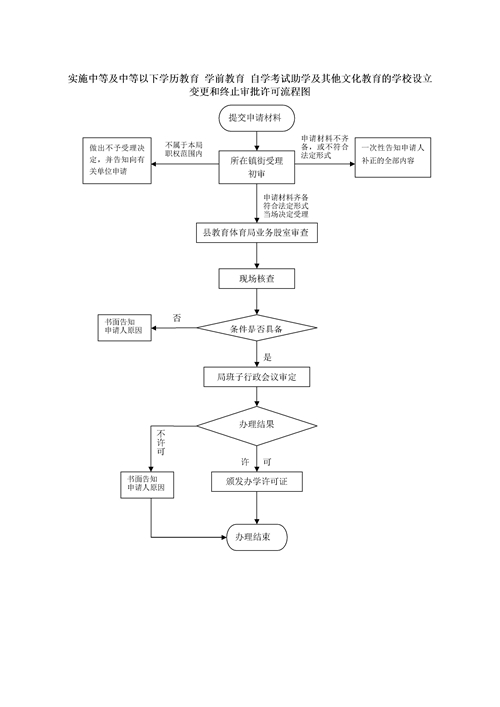 实施中等及中等以下学历教育、学前教育、自学考试助学及其他文化教育的学校设立、变更和终止审批 |