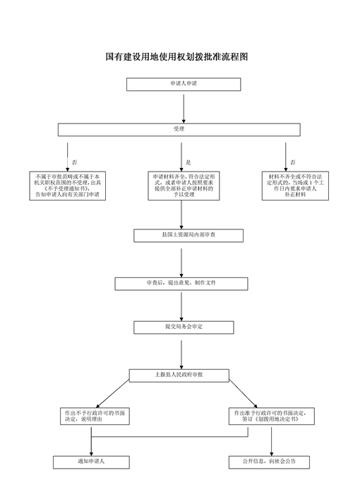 (一)申请事项属本级政府权限范围;(二)申请资料齐全、符合法定形式;(三)符合土地利用总体规划的要求;(四)符合城市规划的要求;(五)符合国家产业政策;(六)符合土地供应年度计划的要求;(七)符合《划拨用地目录》规定用途的用地。 |