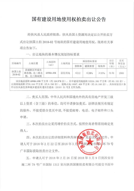 国有建设用地使用权拍卖出让公告