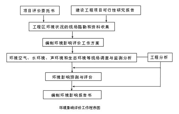 环境影响评价主要工作内容:通过现场调查、收集资料、环境监测、预测计算等方法分析区域主要环境问题;分析评价本工程与当地城市总体规划、环境保护专业规划的相符性;工程建设运行对周围环境影响的范围和程度;工程存在的环境风险及可接受性,工程采取的环保措施的有效性,并针对这些影响和风险提出减缓措施,为本工程的建设和运行管理提供科学依据。在此期间就本工程的环境保护相关问题广泛征询公众意见和建议,并进行反馈。环评工作程序见下图。