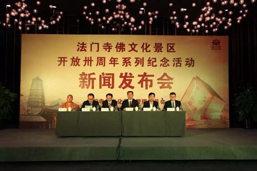 4月27日,法门寺佛文化景区在西安举行开放卅周年系列纪念活动新闻发布会。宝鸡市委常委、法门寺佛文化景区党工委书记、扶风县委书记周宇松,法门寺佛文化景区管委会主任、扶风县县长齐军建等领导出席发布会。30多家中央和省市新闻媒体应邀参加。