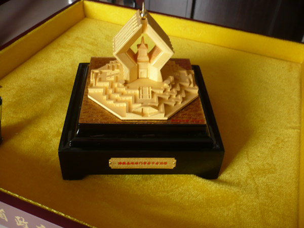 本产品—“祈福圣塔”依原塔1:10000微缩,由宝鸡法门寺圣大文化旅游发展有限公司精心设计制作。经广东省金银珠宝检测中心鉴定,表面含金量足金99,9% ,属中华人民共和国专利产品。公司限量生产,是您馈赠亲友至尊至诚至佳礼品,产品具有极其珍贵的收藏价值。