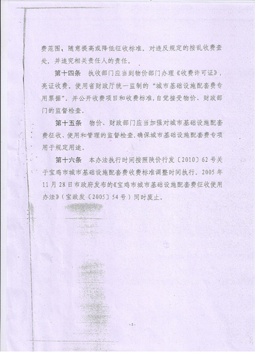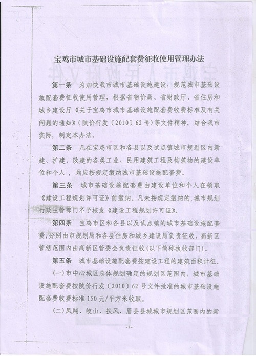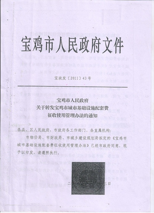 关于转发宝鸡市城市基础设施配套费征收使用管理办法的通知